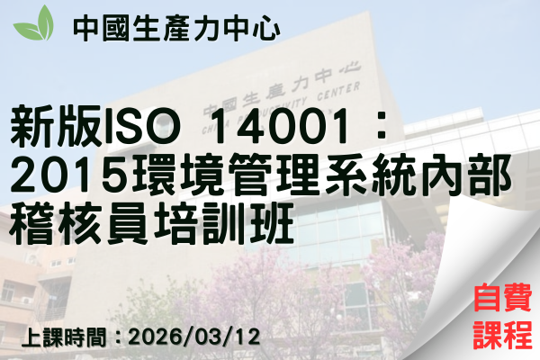 新版ISO 14001:2015環境管理系統內部稽核員培訓班-需考試